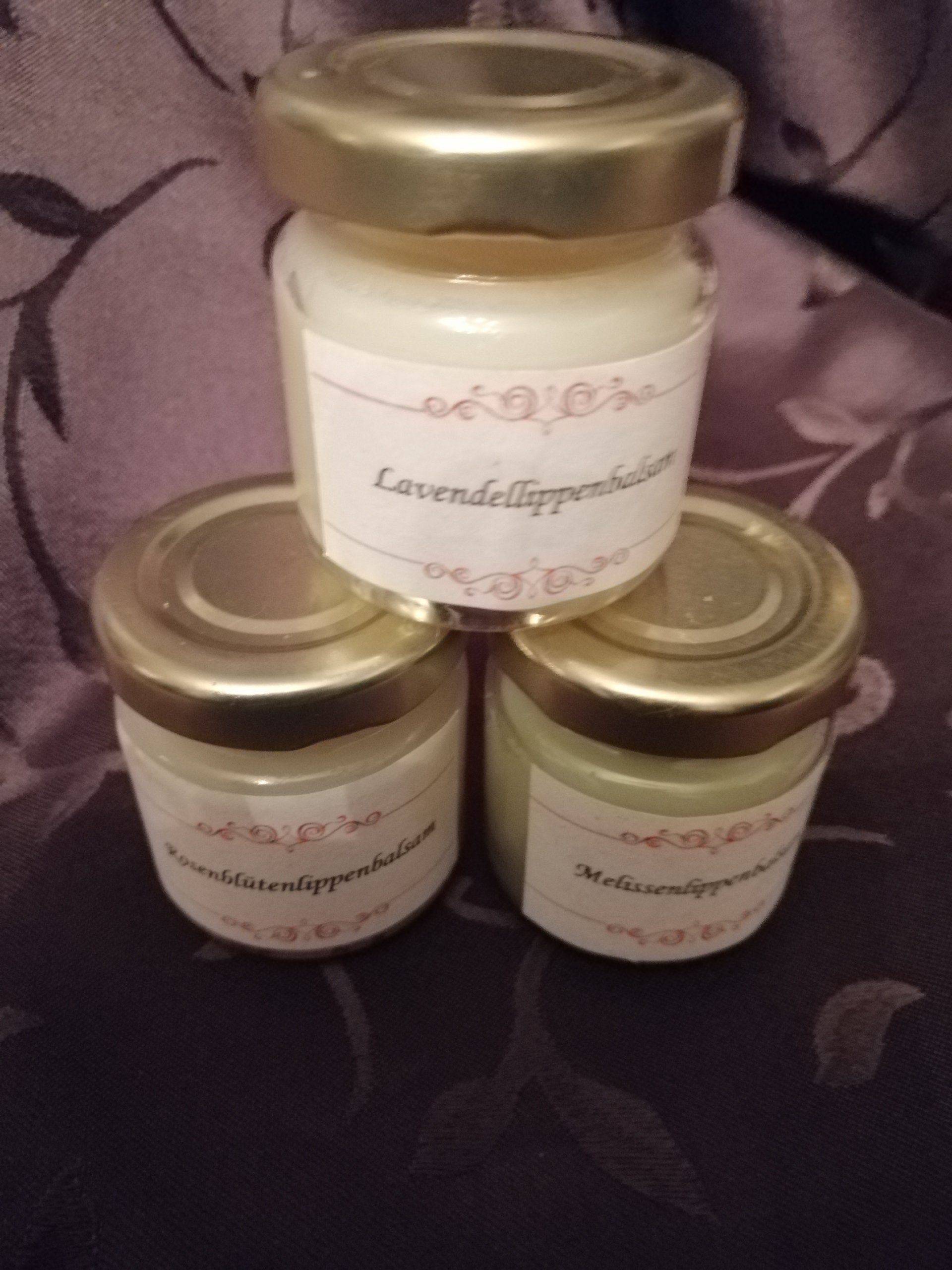 von Rosen-Lavendel-Melissen zur täglichen Pflege der Lippen rein biologisch aus Blüten uns Kräutern
